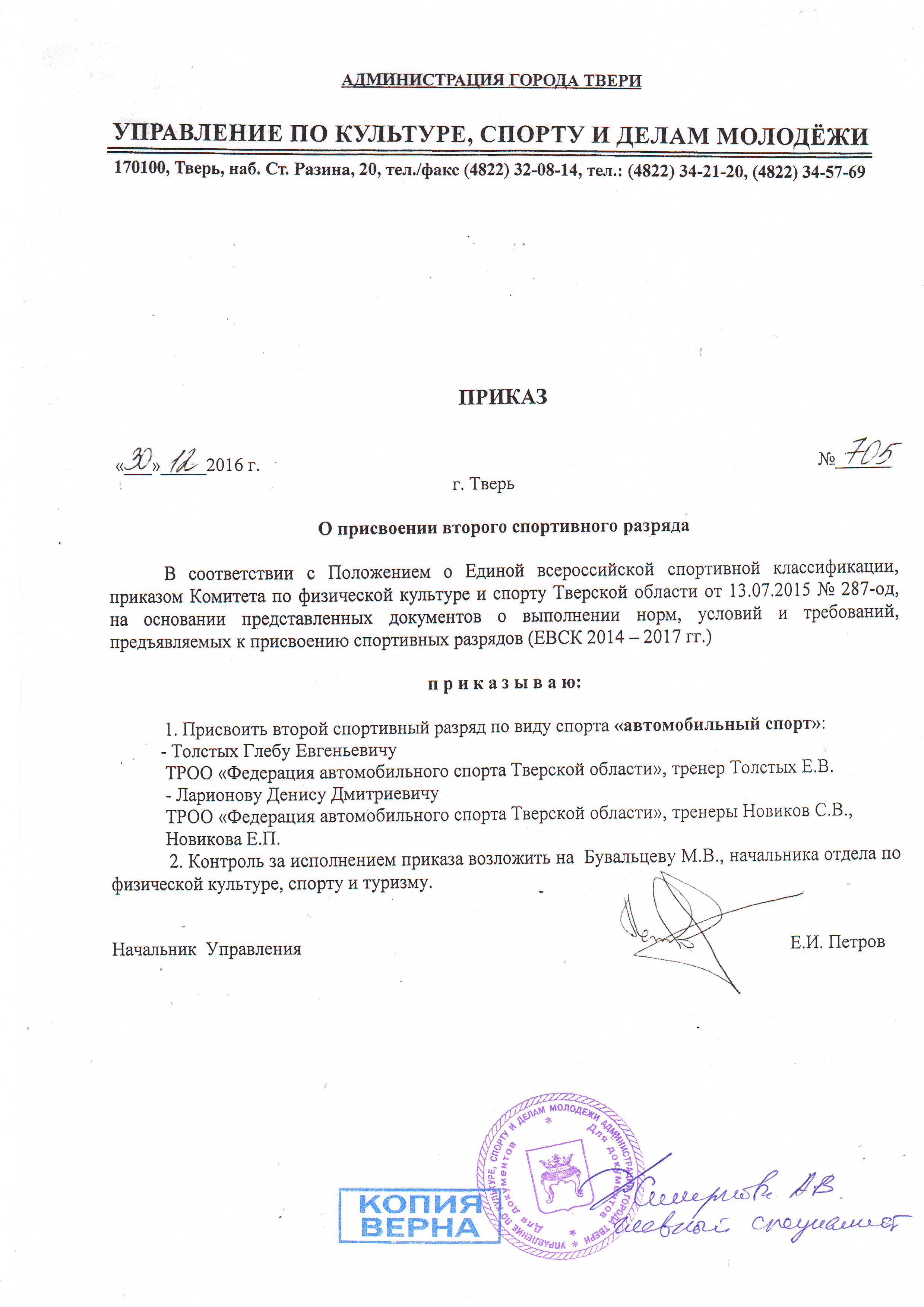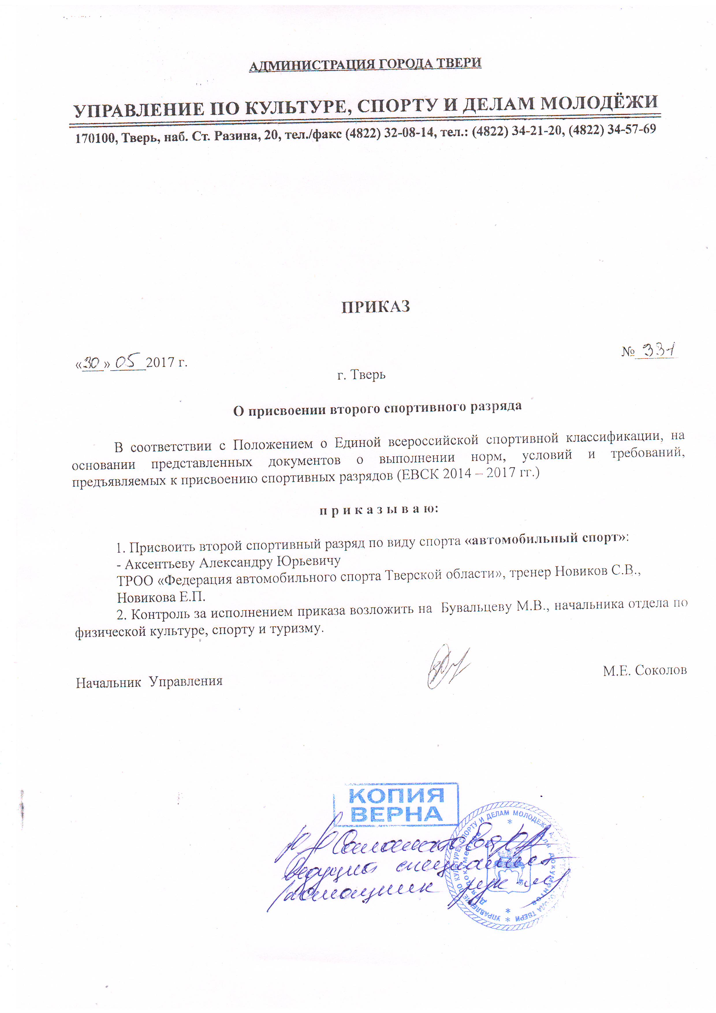 ПРИСВОЕНИЕ СПОРТИВНЫХ РАЗРЯДОВ