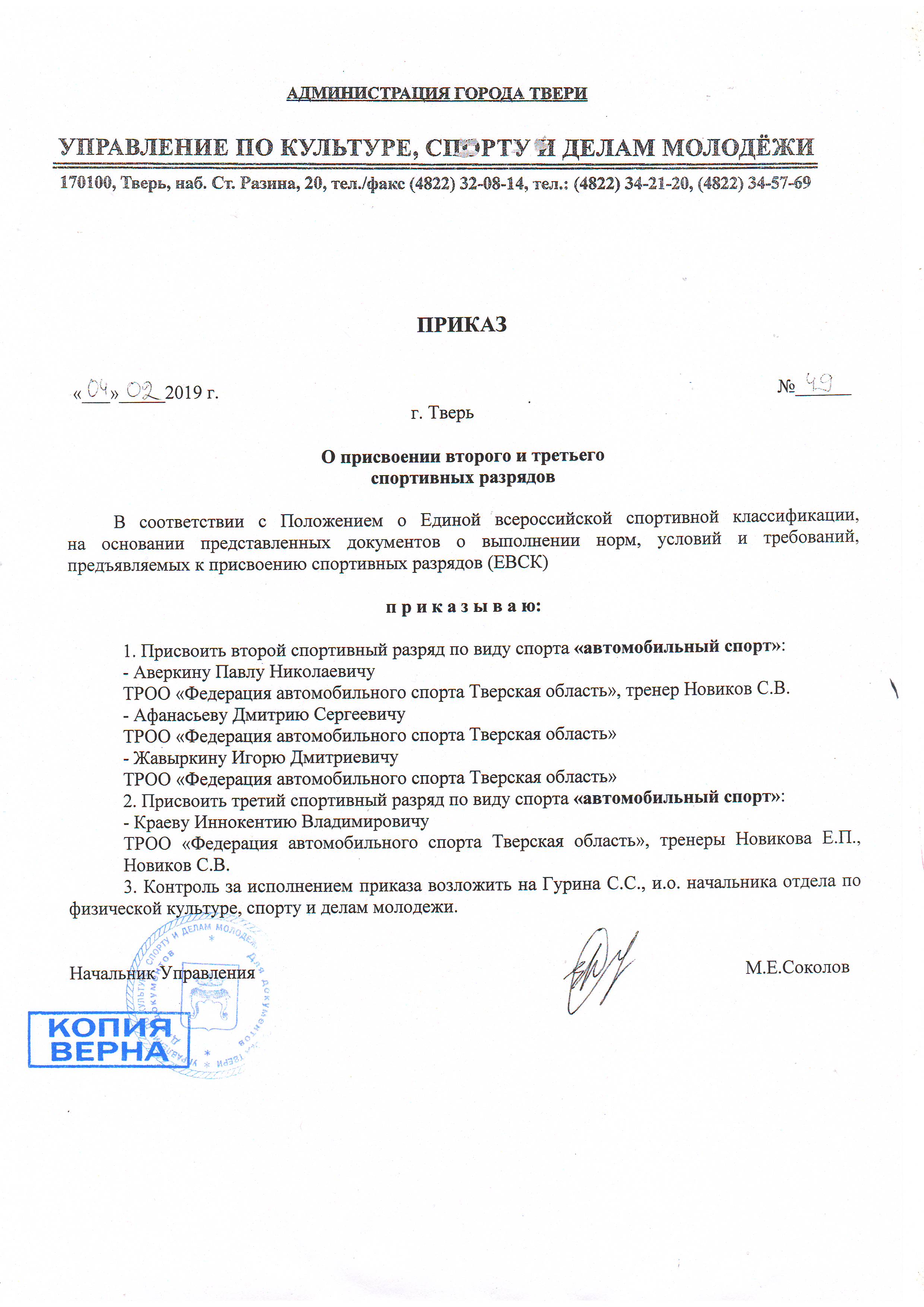 ПРИСВОЕНИЕ СПОРТИВНЫХ РАЗРЯДОВ