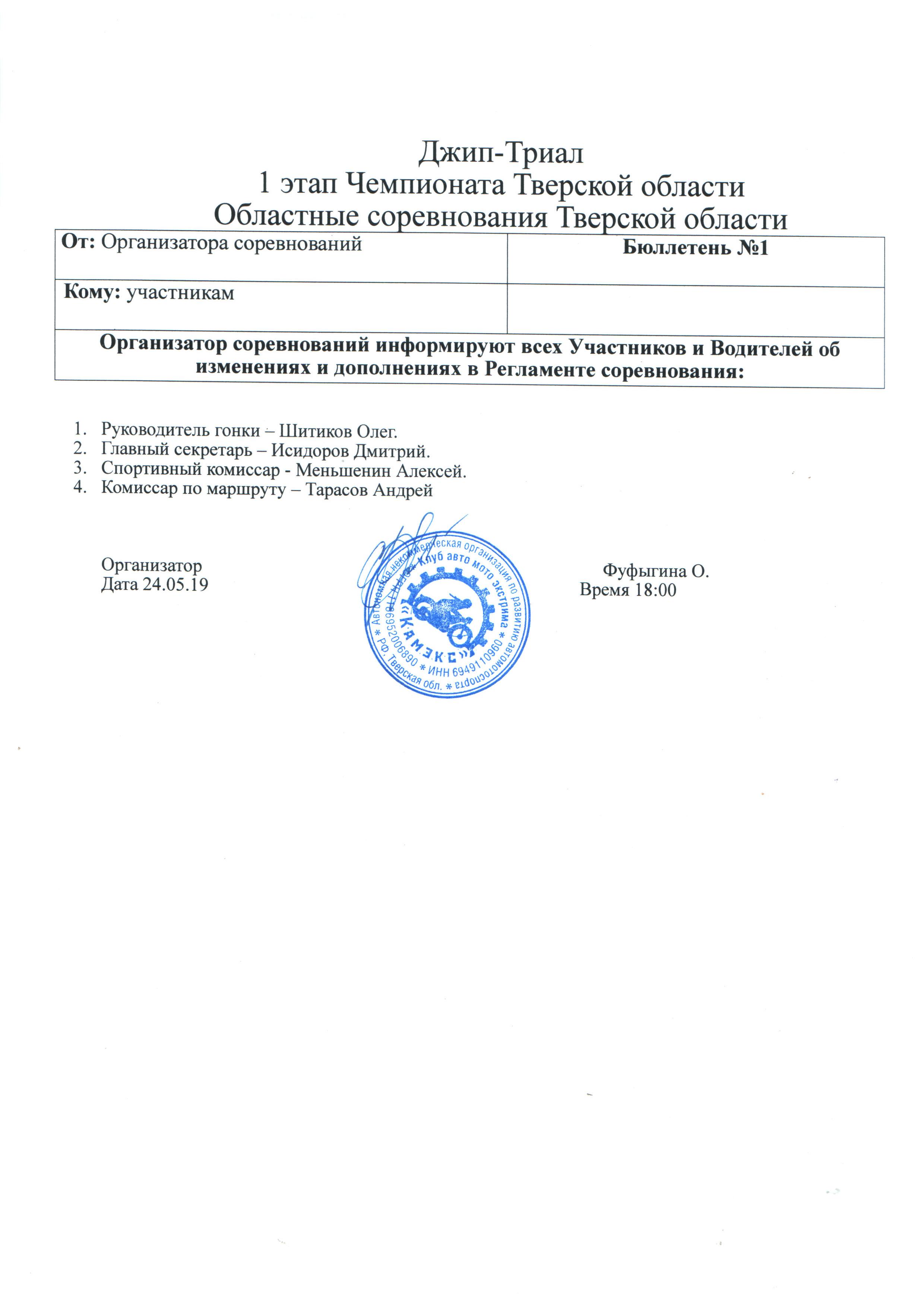 25 мая 2019 года в Тверской области у д. Климтино на полигоне "КАМЭКС" прошли соревнования по джип-триалу - 1 этап Чемпионата Тверской области и Областные соревнования. | |