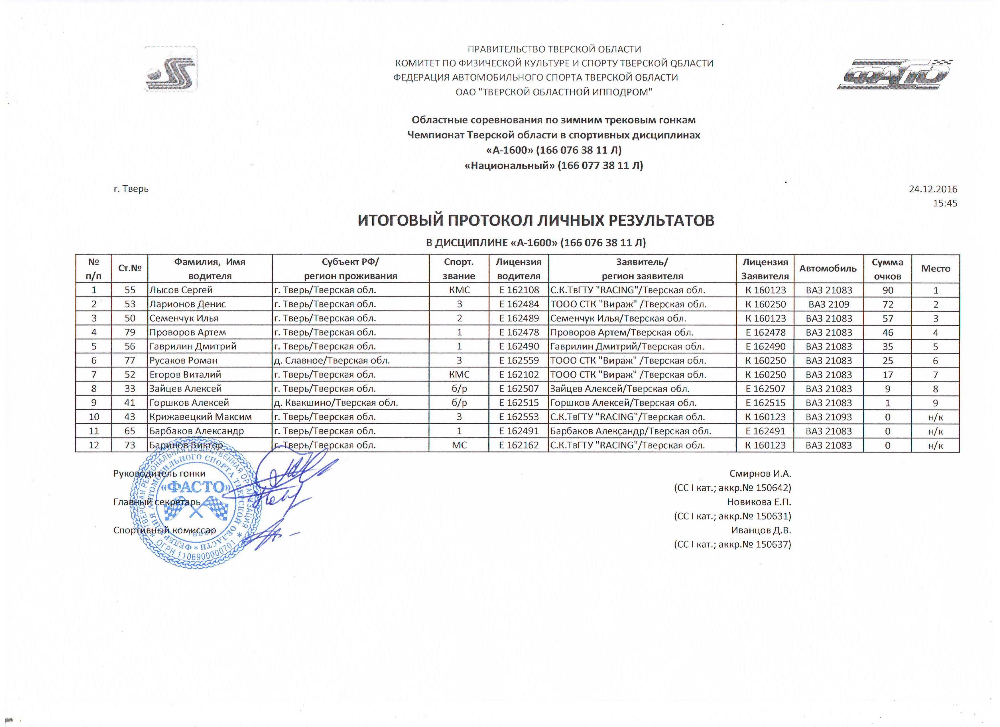 Итоговый протокол трек Тверь 24.12.2016 А-1600