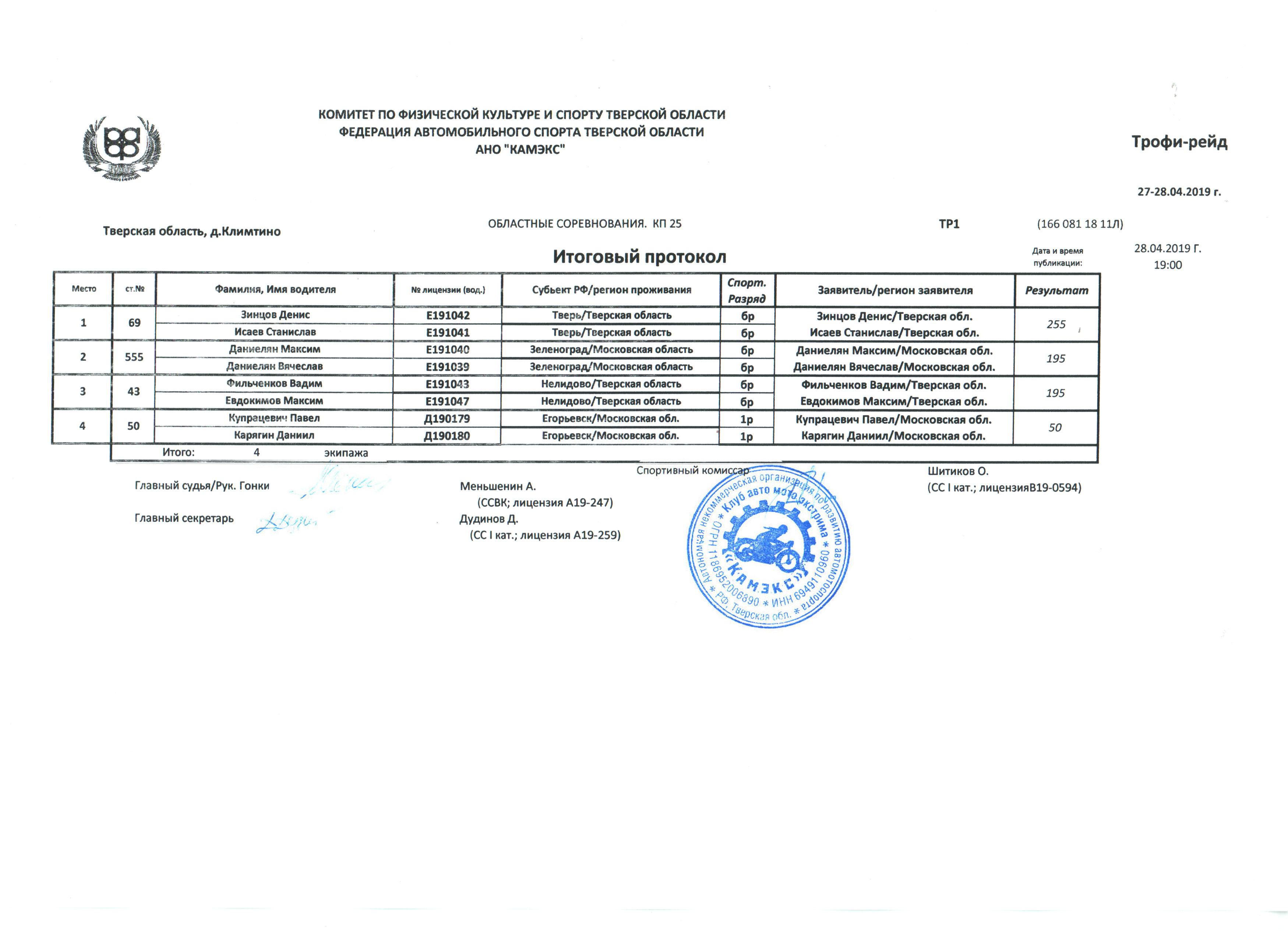 ПОЛОЖЕНИЕ ТРОФИ-РЕЙДЫ 2019
