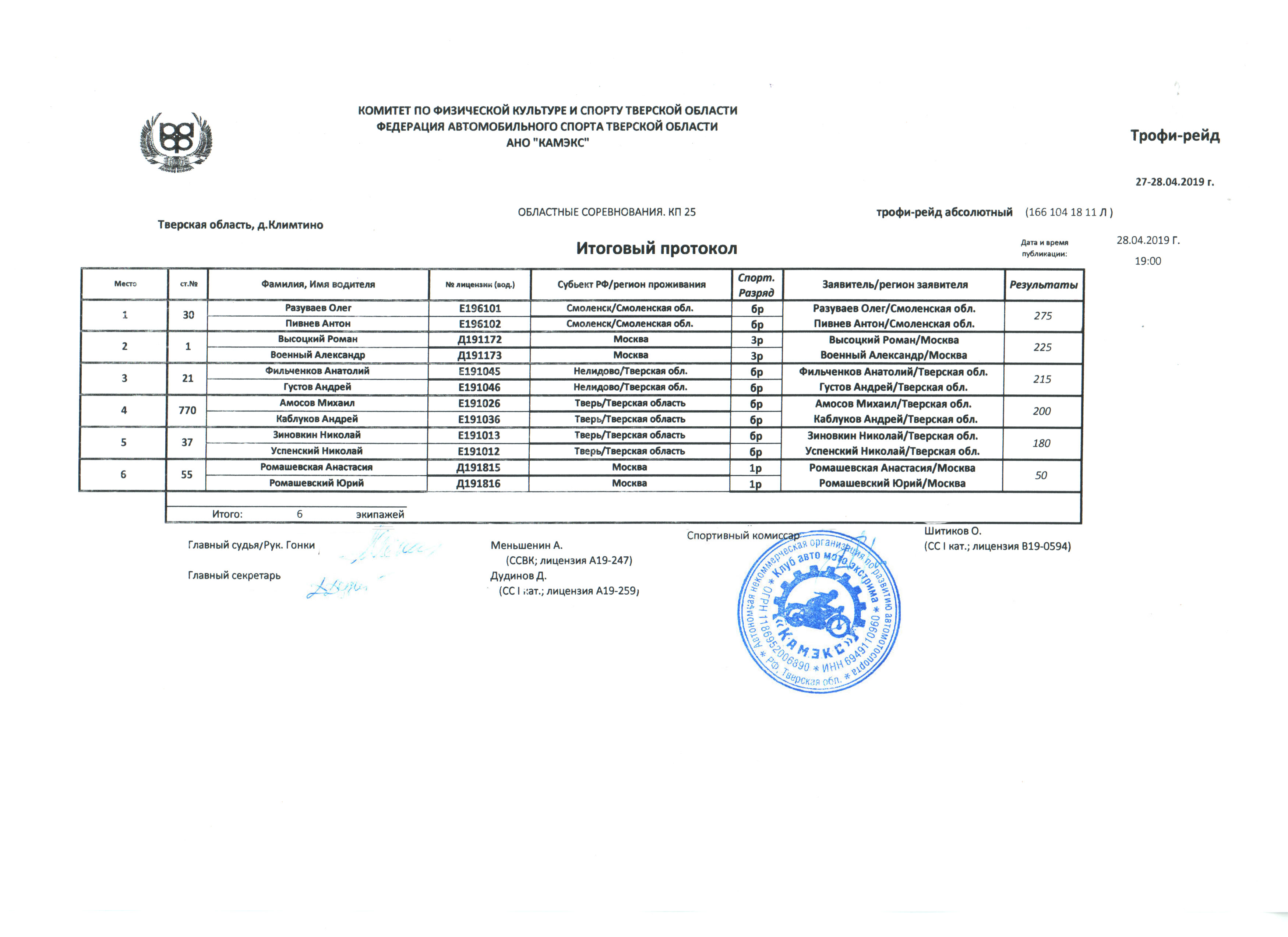 27-28 апреля 2019 года на полигоне КАМЭх (д. Климтино) прошли соревнования по трофи-рейдам.